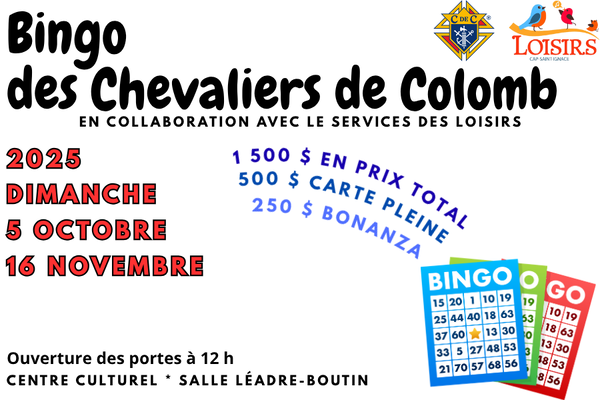 Tournoi de poker - 18 octobre - 10 h - 40 $ - Au parc municipal optimiste  |  Halloween - Rallye - 31 octobre - 16 h 45 - départ de la caserne - grilled cheese gratuits à l'espace 350 de 17 h à 19 h