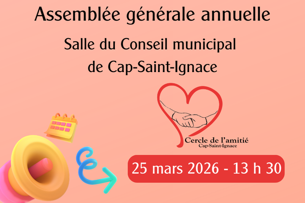 Le Cercle de l'Amitié de Cap-Saint-Ignace vous invite à son assemblée générale annuelle prévue le mercredi
