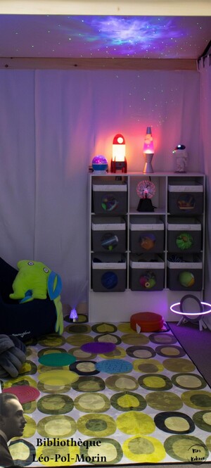 Pensée pour favoriser l’éveil, la détente et l’exploration sensorielle, cette pièce a été conçue avec soin pour répondre aux besoins des enfants, des personnes ayant des besoins particuliers et de toute personne en quête d’un moment de calme ou de stimulation douce. Elle incarne notre volonté d’offrir des environnements adaptés, accessibles et enrichissants pour l’ensemble de notre communauté.